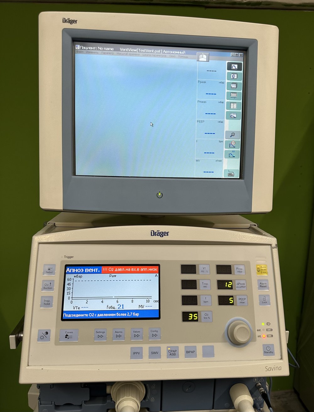 Аппарат ИВЛ Drager Savina, в рабочем состоянии, небольшая наработка по часам