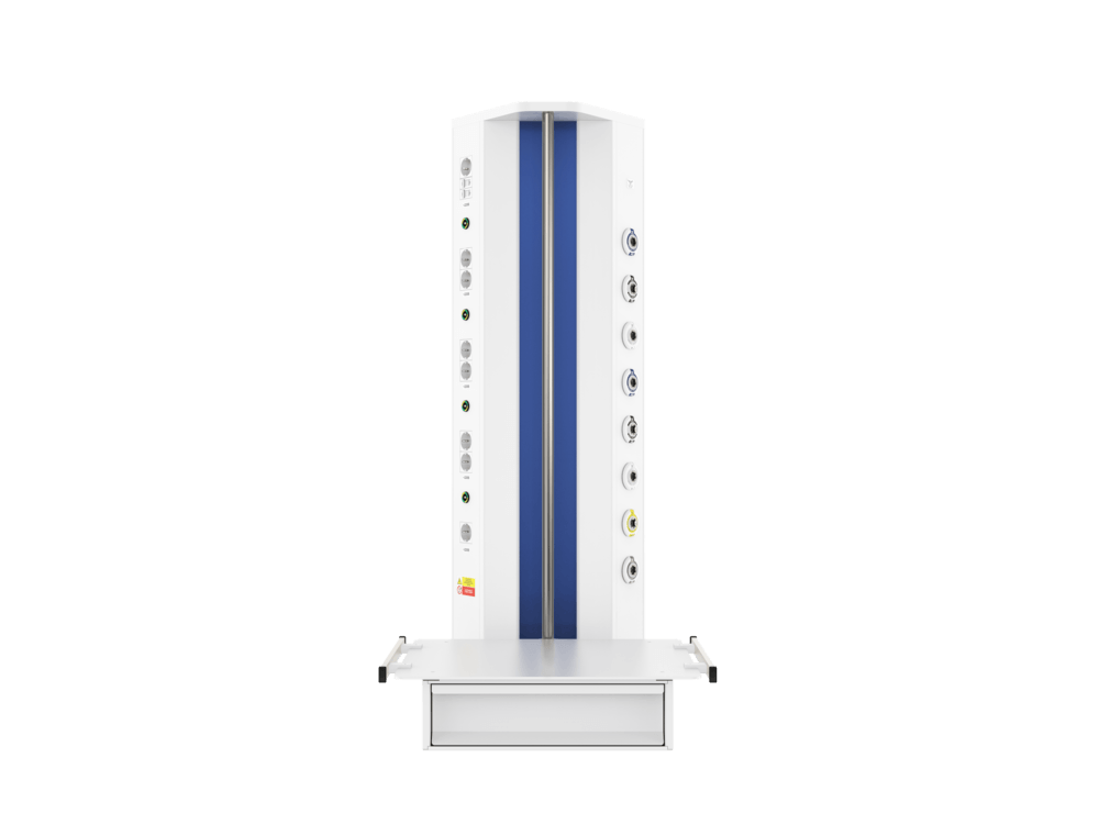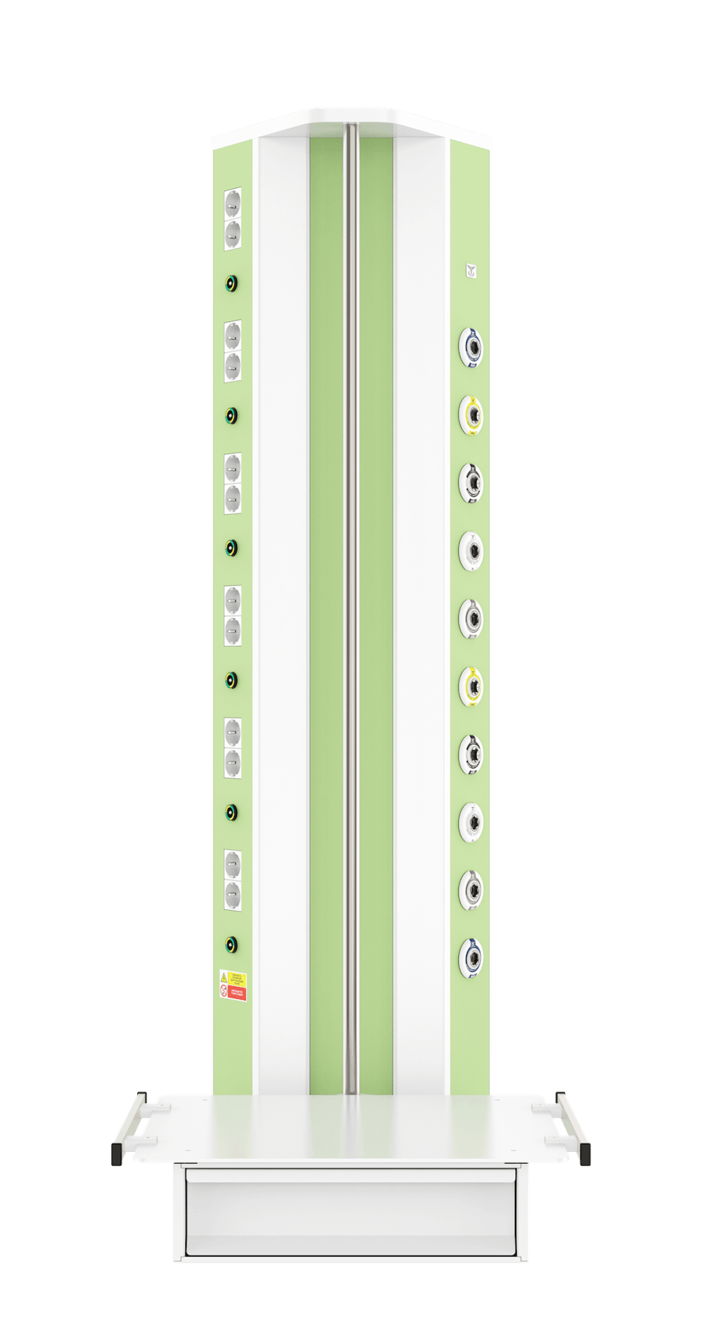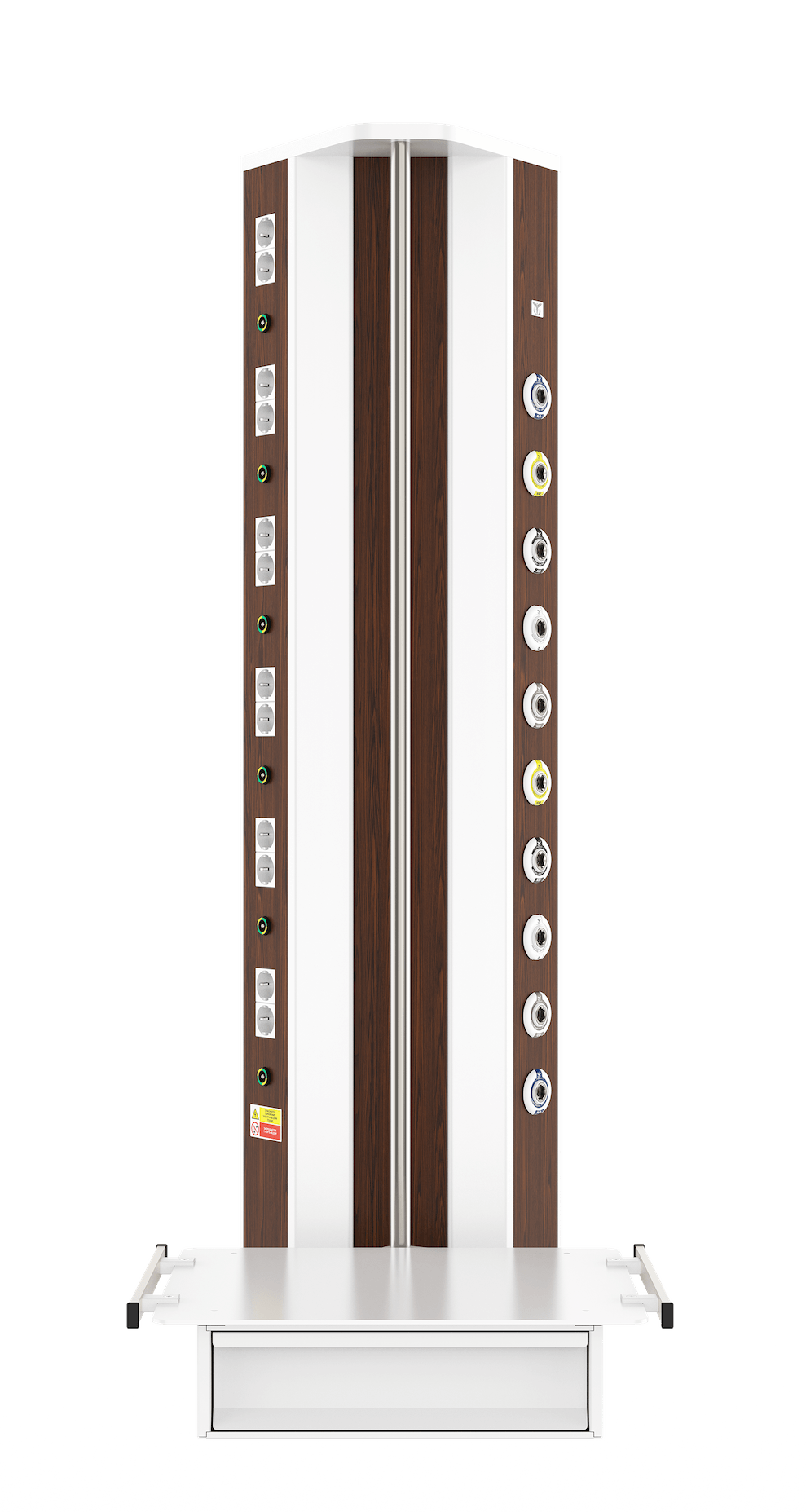Вертикальная медицинская настенная консоль CADUCEUS CS07L используется для помещений, где невозможно установить горизонтальную консоль с необходимым функционалом. Изделие от других модификаций отличается наличием поворотной полки (полок), что позволяет максимально удобно размещать вспомогательное оборудование на консоли даже в стесненных условиях.