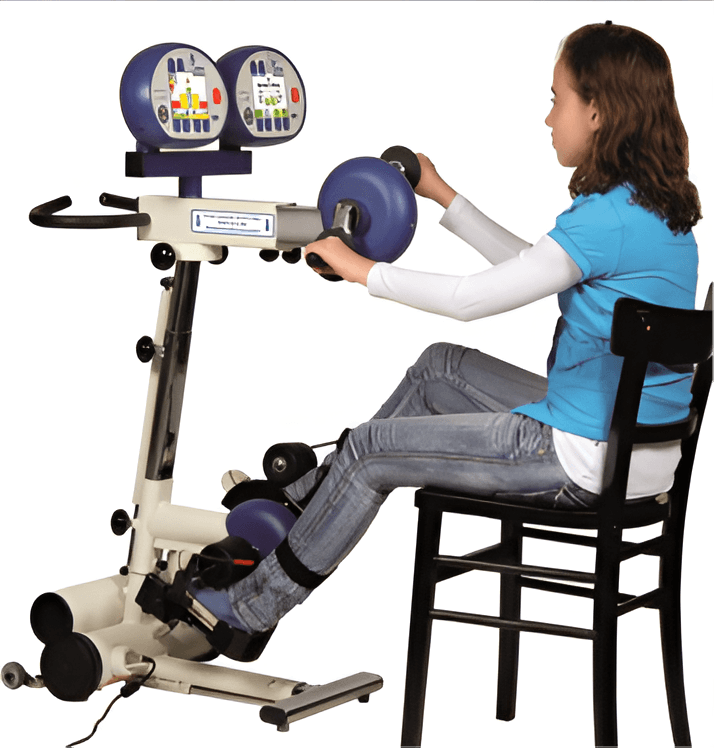 Тренажер медицинский терапевтический МОТОмед модели МОТОмед gracile 12, программно-управляемый тренажер для детей для нижних и верхних конечностей с электроприводами, базовая модель (включая педали безопасные педиатрические дезинфицируемые (пара), фиксаторы для голени педиатрические (пара), тренажер для рук/верхней части туловища gracile и операционную панель duplex) в комплекте с принадлежностями: ложа для рук с манжетами педиатрические (пара); Самообслуживаемые держатели ног педиатрические; Стабилизатор положения инвалидной коляски; противоскользящий коврик.