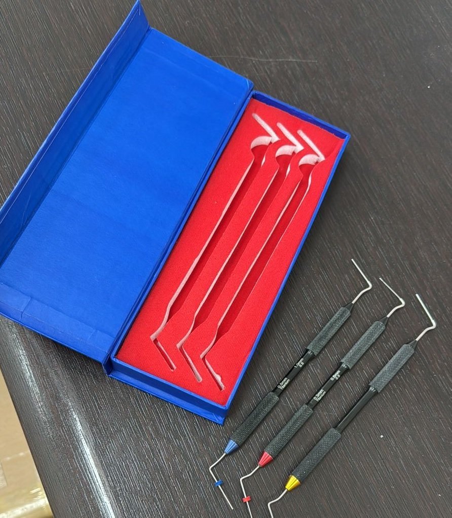 - Хранение в футляре: защищает инструменты от повреждений и обеспечивает стерильность