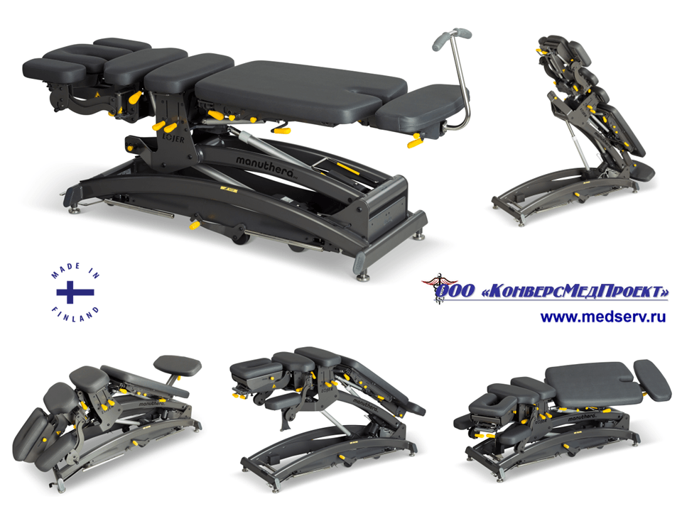 ООО «КонверсМедПроект» на правах официального дистрибьютора представляет высокотехнологичный стол для мануальной терапии Manuthera 242 (https://www.medserv.ru/catalog/massazhnye-stoly/183900.html ) производства Lojer, Финляндия.