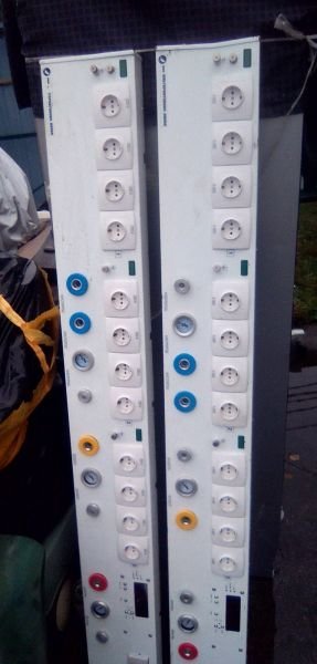 Установлены 5 газовых розеток с 3мя регуляторами, 2 кислород, 2 азот, 1 воздух. Подвод у всех стандартный, одинаковый, отличаются только входными отверстиями. То есть если вам нужно все 5 под кислород, то надо заменить только входные заглушки с отверстиями. Их всего 3 вида кислород, азот, воздух.