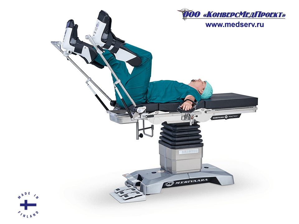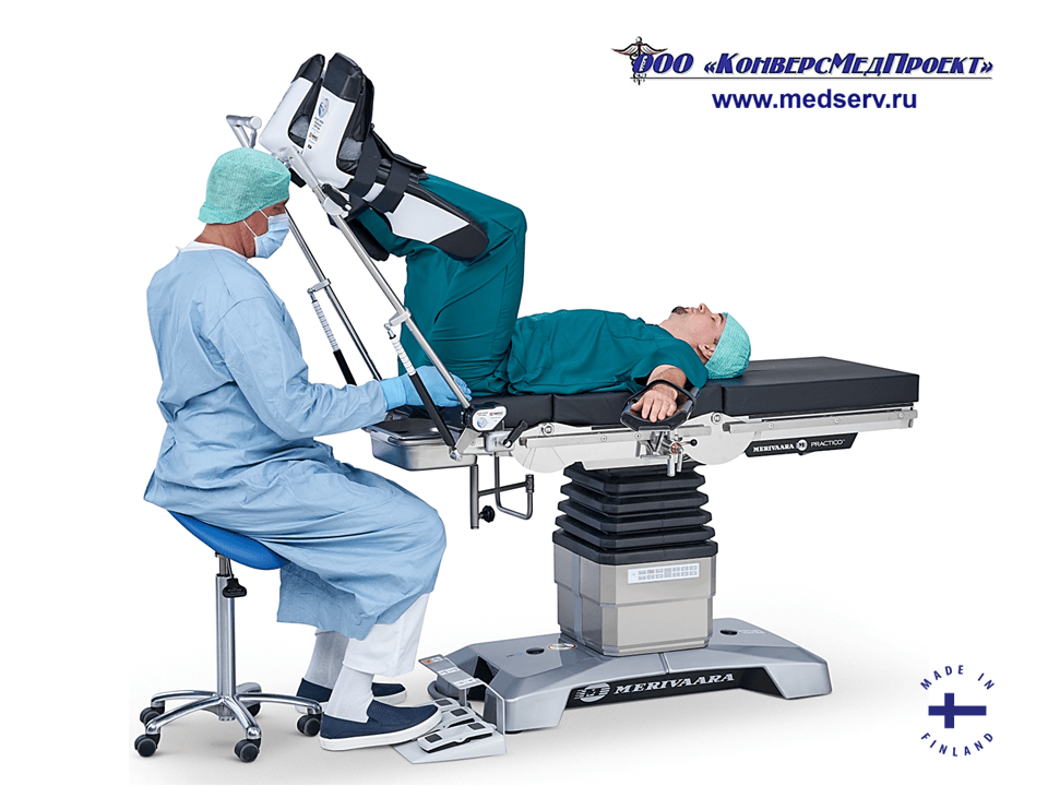 ООО "КонверсМедПроект" на правах официального дилера представляет специальные опоры для ног с пневматическим приводом типа «стремя» / «сапожки» / «башмаки» (https://www.medserv.ru/catalog/Operatsionnye-Stoly/62301.html) для удобства позиционирования пациента при проведении гинекологических, урологических и проктологических операций производства Merivaara Corp., Финляндия.