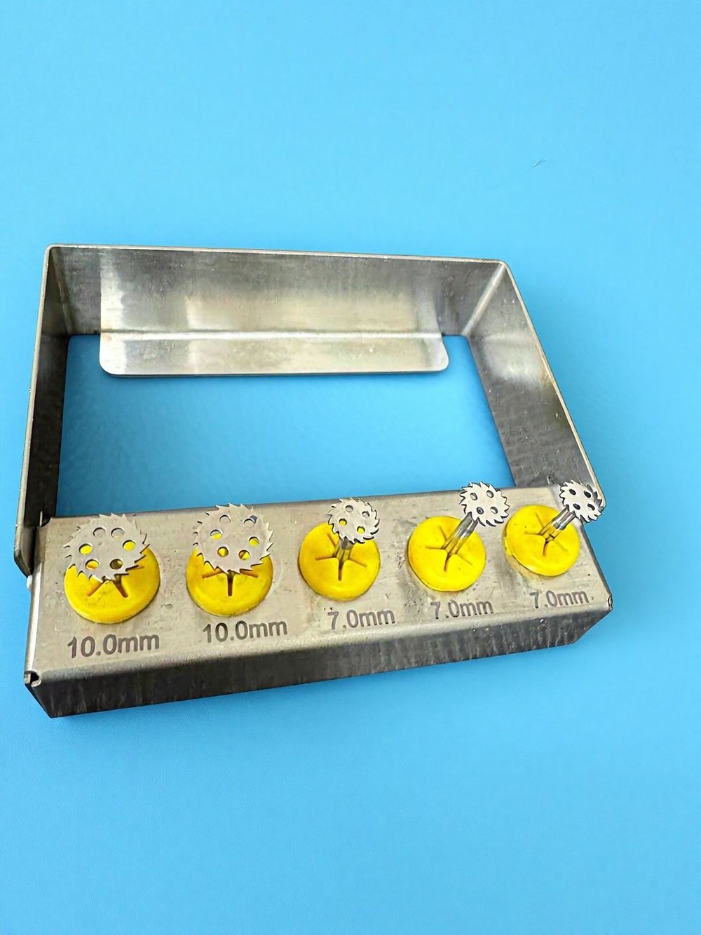 Набор включает инструменты разных диаметров (10.0 мм и 7.0 мм ), что позволяет выбрать подходящий размер для конкретной процедуры