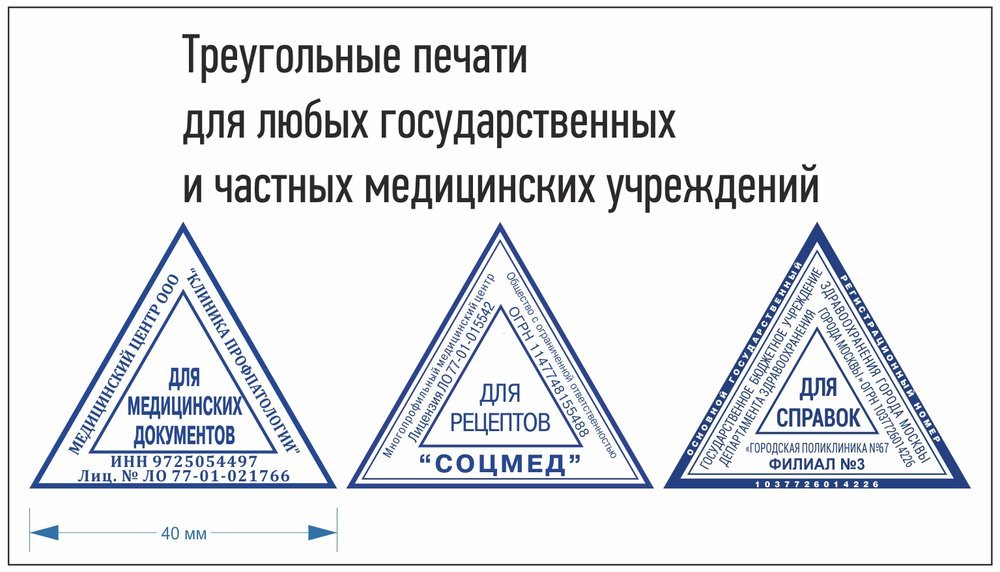 Треугольный штамп (печать) "Для справок", Для листов нетрудоспособности и любые другие