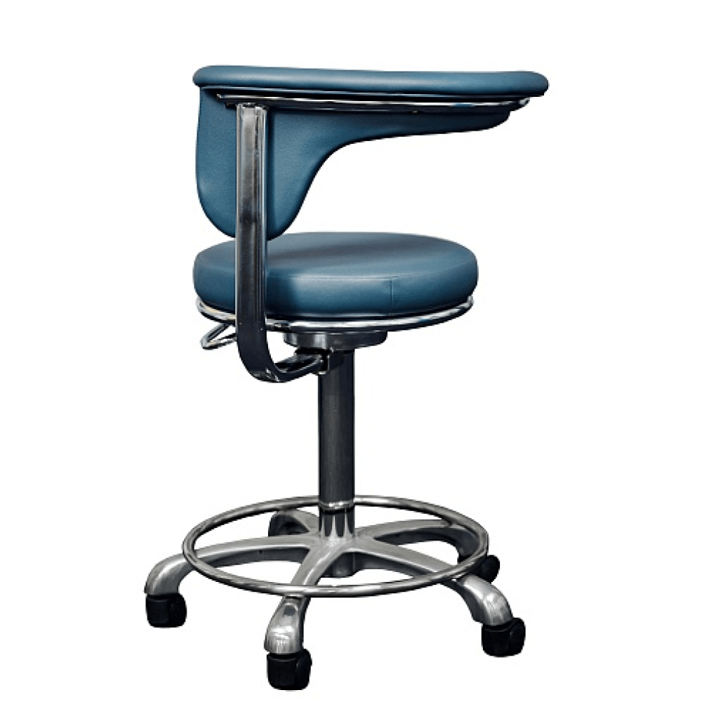 Стул врача имеет пневматическую регулировку по высоте на 150 мм. Сиденье вращается на 360°. Для комфорта врача имеется спинка-упор.