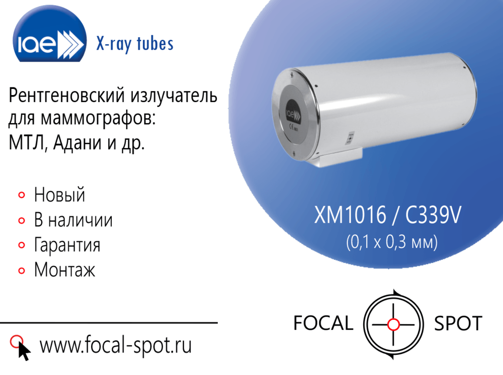 В наличии новый рентгеновский излучатель XM1016 / C339V (0,1 х 0,3 мм) для маммографов: МТЛ, Адани и др. Следите за новостями на нашем канале: https://t.me/focalspot