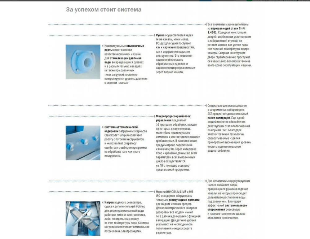 - Эффективная дезинфекция: сочетание моющих средств и высоких температур обеспечивает полную стерильность.