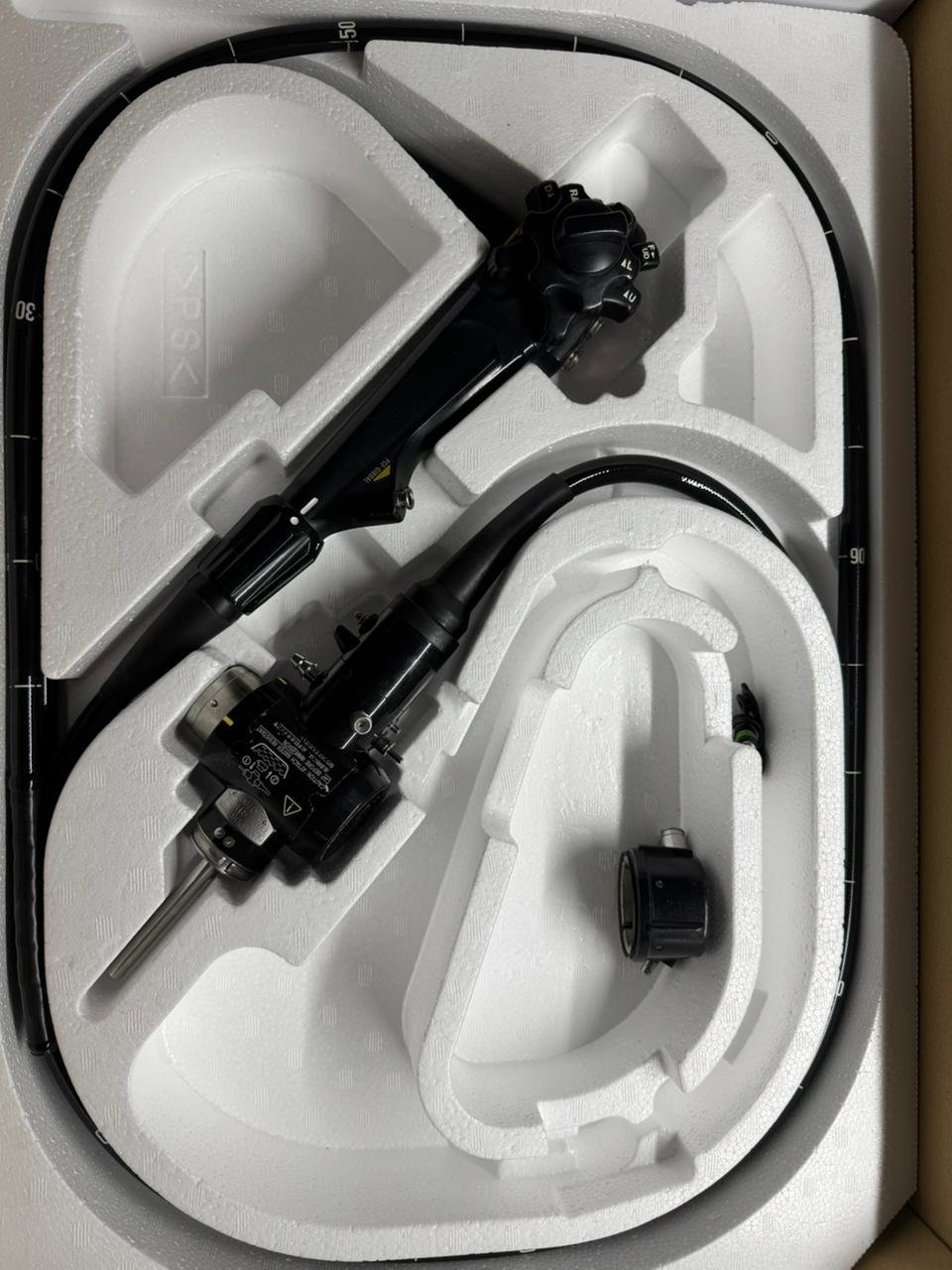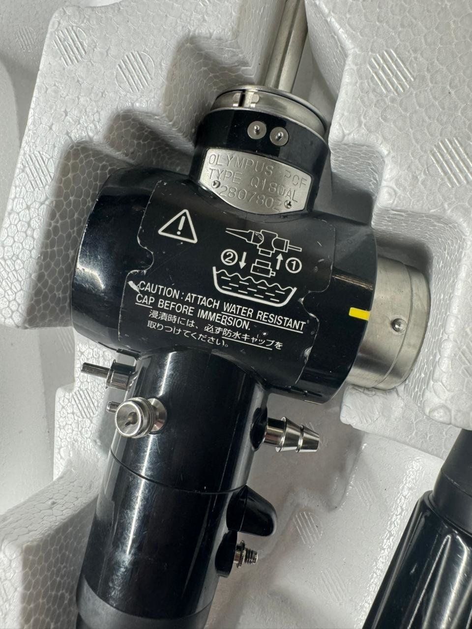 Видеоколоноскоп педиатрический Olympus PCF-Q180AL, восстановленный, с диаметром дистального конца 11,3 мм и вводимой трубки 11,5 мм и большим инструментальным каналом 3,2 мм. В отличном состоянии. В комплекте клапаны и крышка для замачивания.