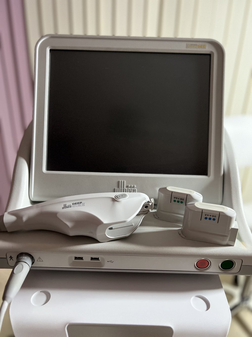 Многослойный лифтинг – ультразвук имеет направленное воздействие, и подтяжка происходит на всех уровнях (ретикулярный слой дермы, мышцы, подкожно-жировой слой, СМАС) Однократное проведение процедуры с эффектом от 1,5 лет Не имеет побочных эффектов, проводится без охлаждения кожи и имеет минимальный восстановительный период – гиперемия (покраснение) кожных покровов держится не более 2 часов.