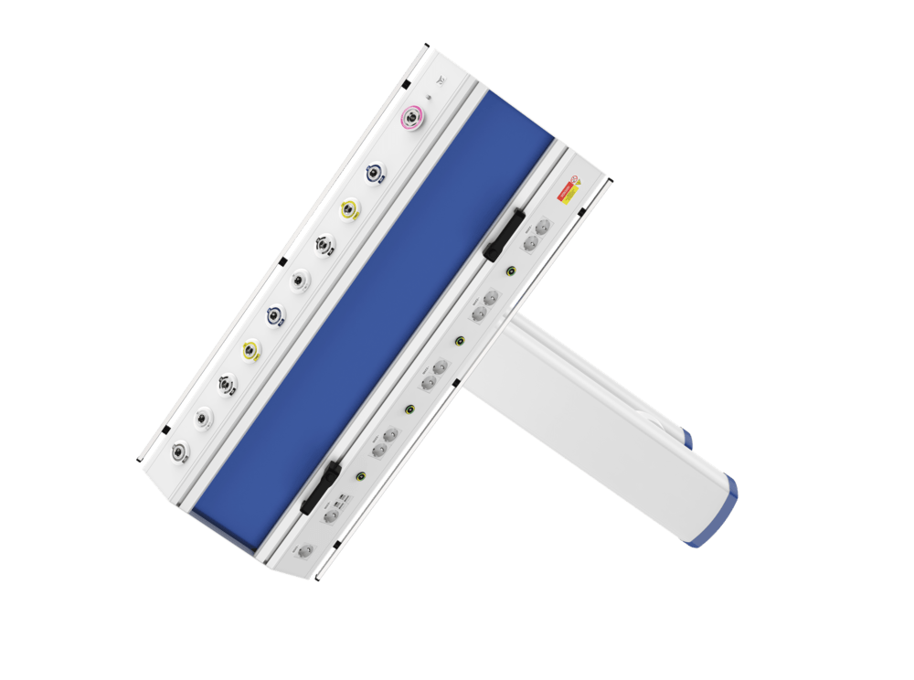 Настенная медицинская консоль CADUCEUS (Кадуцей)  C2E-A комплектуется разъемами быстрого соединения медицинских газов, разъемами RJ-45 для передачи данных, и электрическими розетками. Продуманный дизайн позволяет эргономично разместить все компоненты, а удобная ручка способствует быстрому перемещению консоли в пространстве без особых усилий.