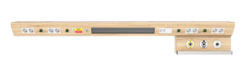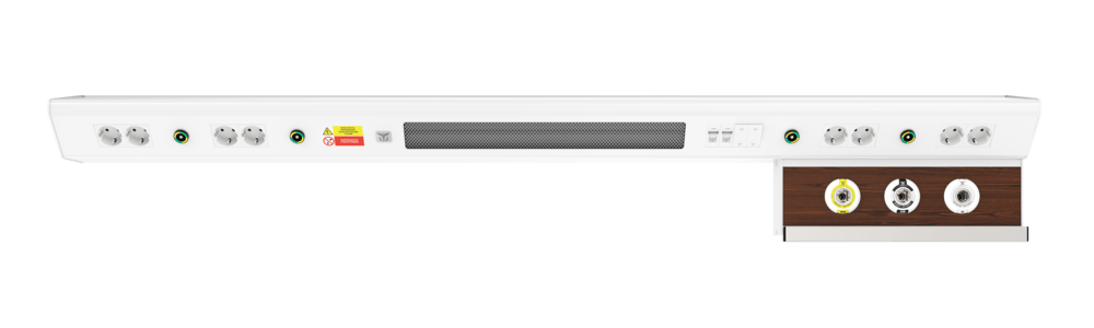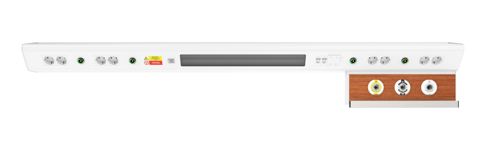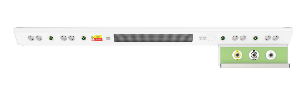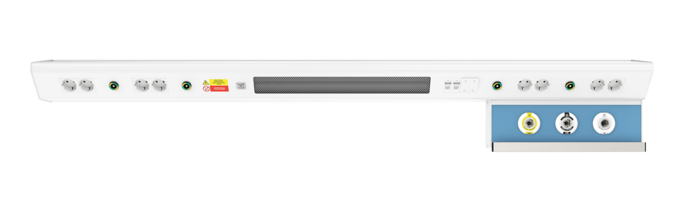 Продуманная до мелочей конструкция CADUCEUS CN1 может комплектоваться разъемами быстрого соединения медицинских газов, электрическими розетками 220В, выключателями освещения и медицинским рельсом для крепления различного медицинского оборудования. Оснащение коммуникационными разъемами для связи «сестра-пациент» и передачи данных, а также разными типами светильников верхнего, прямого, ночного освещения ориентировано на ежедневные потребности пациентов.