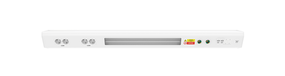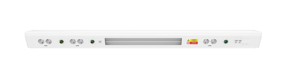 Это оптимальное решение для палат пребывания пациентов, где отсутствует необходимость подвода медицинских газов. Данная консоль монтируется непосредственно над кроватями пациентов и служит для организации местного освещения и электропитания.