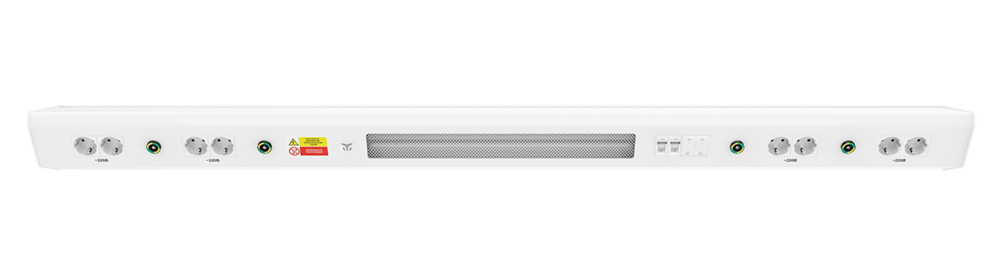 Грамотное использование принципов эргономики позволяет компактно разместить на консоли CADUCEUS CN0 электрические розетки в количестве до 8 штук, выключатели света, до 3х разъемов RJ-45 и гильзы защитного соединения*.