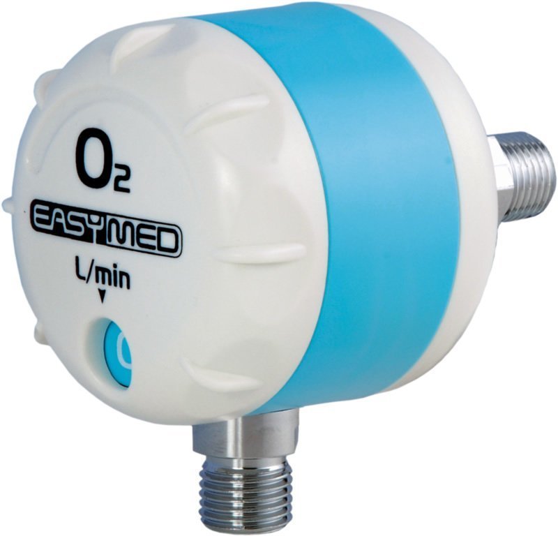 Расходомеры типа EASYMED являются высококачественными измерительными приборами мгновенного реагирования с калиброванными  отверстиями для регуляции потоков медицинских газов, в частности, кислорода при кислородотерапии. Они изготовлены со встроенным редуктором давления для стабилизации подаваемого давления и с выходным соединением с резьбой, адаптированной к различным устройствам. Корпус выполнен из ударопрочного полимера  с фурнитурой, плакированной латунью, в то же время как большая эргономичная ручка управления позволяет оператору плавно изменять потоки кислорода, выбирая один из десяти вариантов. Небольшие размеры и технические особенности позволяют циферблатным расходомерам EASYMED подавать медицинские газы с повышенной точностью, даже в экстремальных условиях скорой медицинской помощи. Они не нуждаются, в отличие от обычных расходомеров с вертикальным индикатором, в постоянной вертикальной позиции. При помощи ручки можно регулировать поток кислорода по 10 опциям.