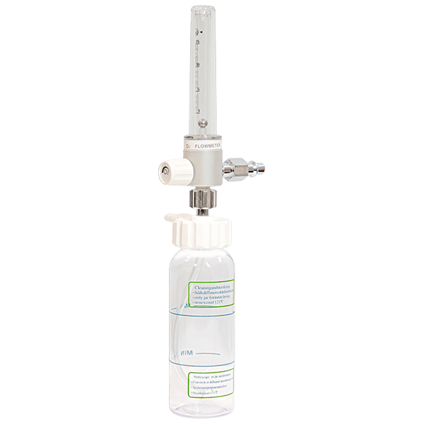 Увлажнители изготовлены в виде прозрачного сосуда и крышки, сделанных из поликарбоната. Все комплектующие из латуни и могут стерилизоваться в автоклаве при температуре 134 °C. Расходомер в составе устройства позволяет контролировать точность потока кислорода. Удобная шкала обеспечивает легкость считывания значений потока. Выходное соединение, имеет резьбу, адаптированную к различным устройствам.