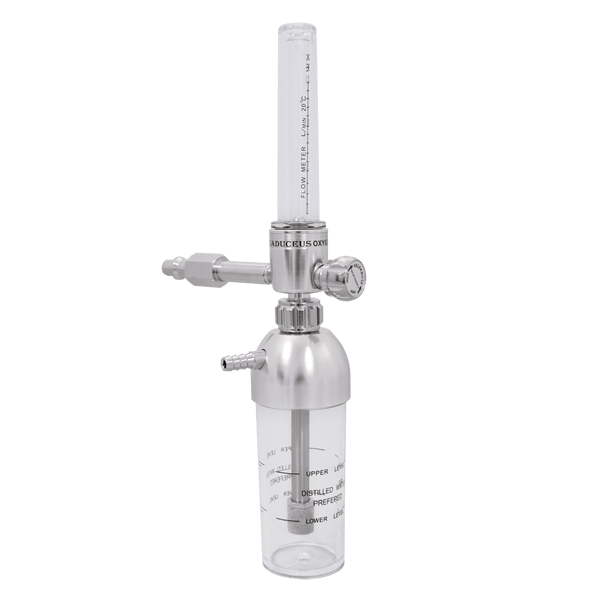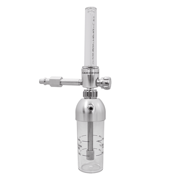Увлажнители изготовлены в виде прозрачного сосуда из поликарбоната и алюминиевой крышки, а корпус устройства выполнен из латуни, что обеспечивает надежность конструкции и долговечный срок службы. Может стерилизоваться в автоклаве при температуре 120 °C. Расходомер в составе устройства позволяет контролировать точность потока кислорода. Удобная шкала обеспечивает легкость считывания значений потока. Выходное соединение, имеет резьбу, адаптированную к различным устройствам.
