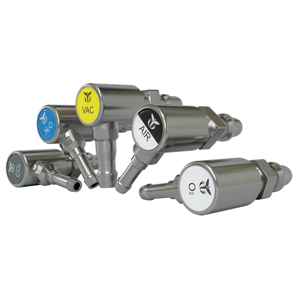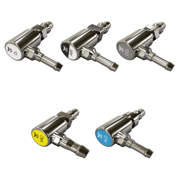 Штекеры для кислорода (O2), сжатого воздуха (AIR), закиси азота (N2O), вакуума (VАС), углекислого газа (CO2) предназначены для быстрого подключения в разъемы быстрого соединения медицинских газов без применения специального инструмента.