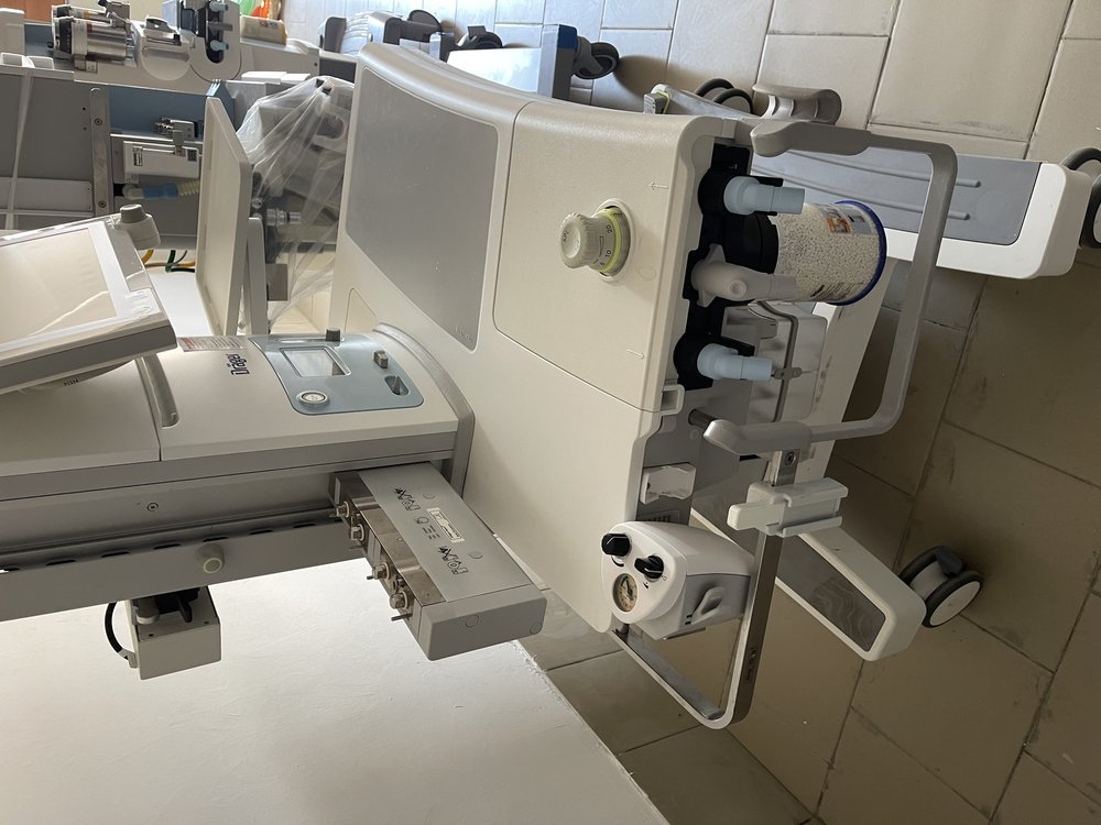 - Панель состояние оборудования с ЖК дисплеем для просмотра давления в дыхательных путях, состояния заряда батареи и остаточной емкости источника газов (централизованного газоснабжения и баллонов);