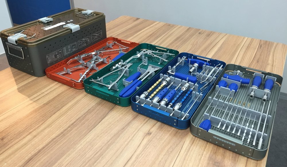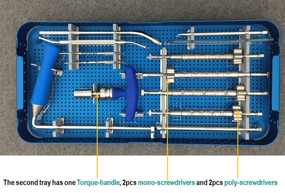 Инструмент для транспедикулярных винтов под балку 5,5мм, включающий 4 сета инструментов: