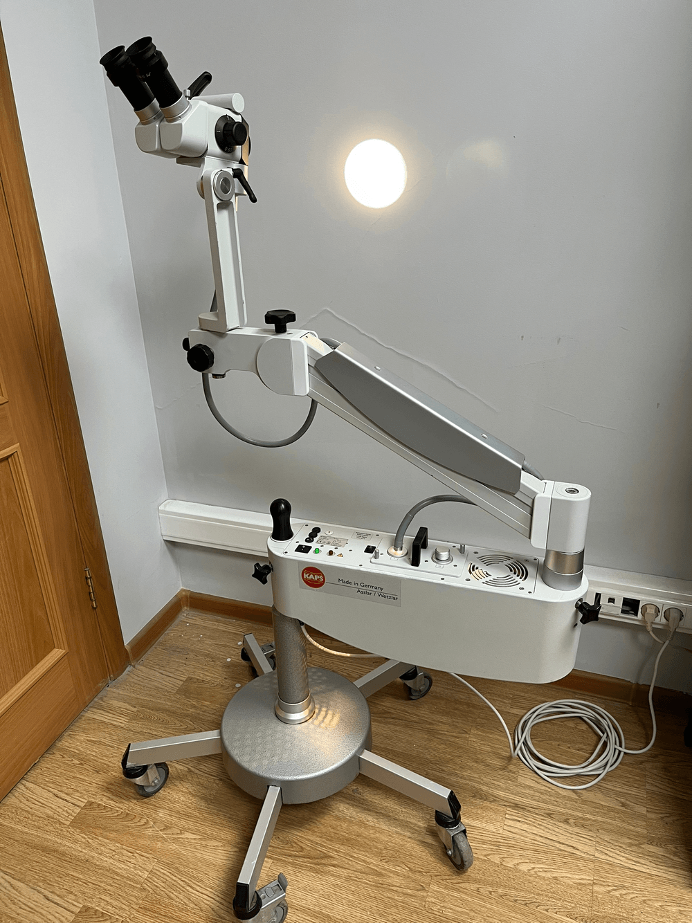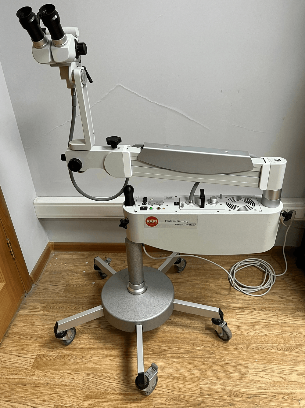 Кольпоскоп бинокулярный Karl Kaps Som 52. Фокусное расстояние 300 мм. Окуляры WF20x/12. Зелёный фильтр.