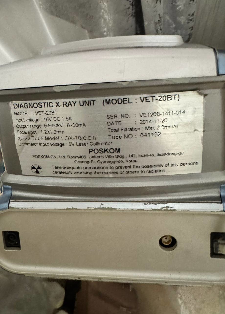 Портативный ветеринарный рентген Poskom VET-20BT (серия XPRIME). Компактный и мощный, в отличном рабочем состоянии.. Батарея нормальная, может работать без электричества до 500 снимков.