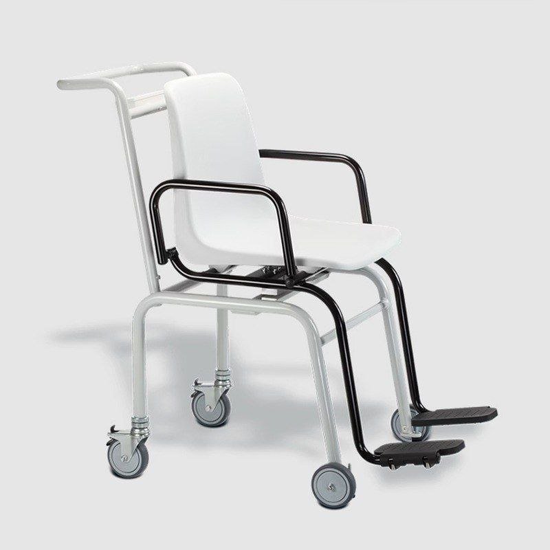 Кресло-весы для взвешивания в сидячем положении. Макс нагрузка 200 кг., цена деления 100 гр. Каркас устройства из металлических круглых трубок с плавными изгибами, без острых углов. Ножки упираются на 4 колеса, 2 задних из которых тормозами-стопорами. С помощью ручки-дуги удобно управлять перевозкой. Литое сиденье выполнено из медицинского пластика, имеет эргономически плавные, огибающие тело формы.