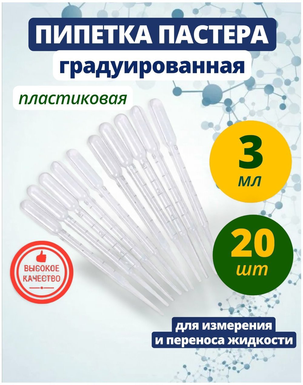 Набор пипеток из 20 штук обеспечивает удобство и экономию.