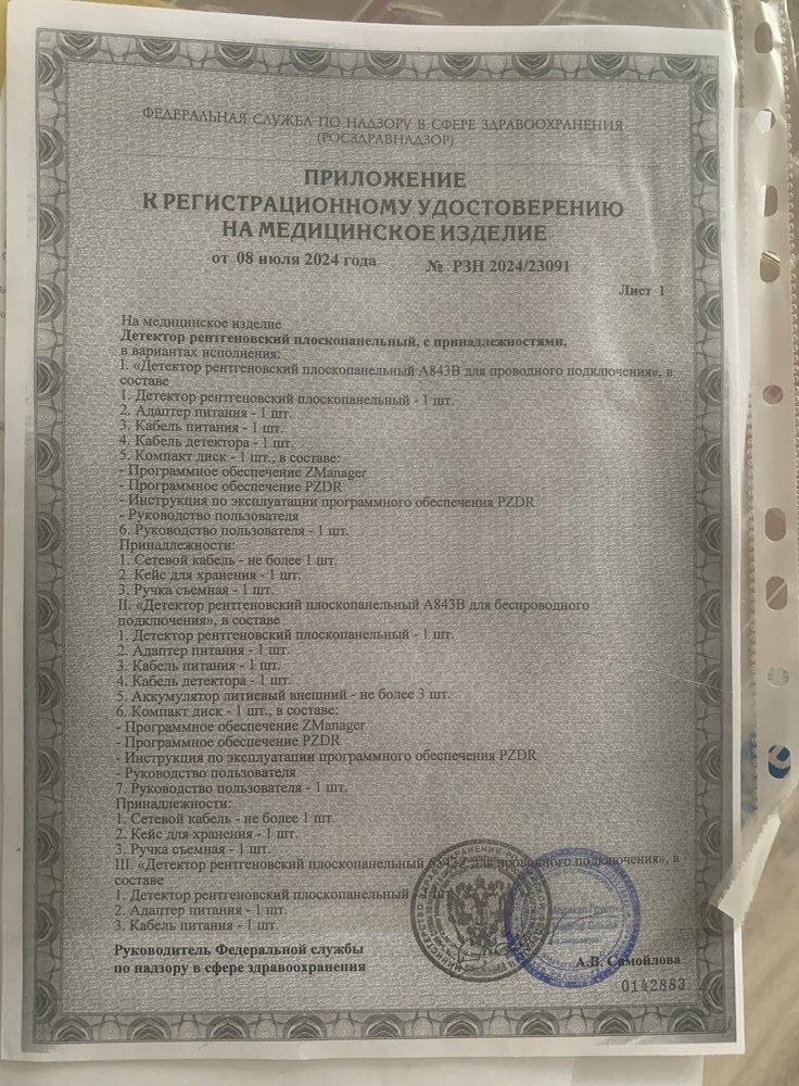 Детектор рентгеновский плоскопанельный 4343Z для проводникового подключения.