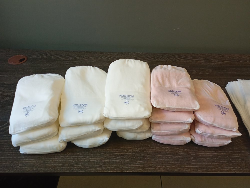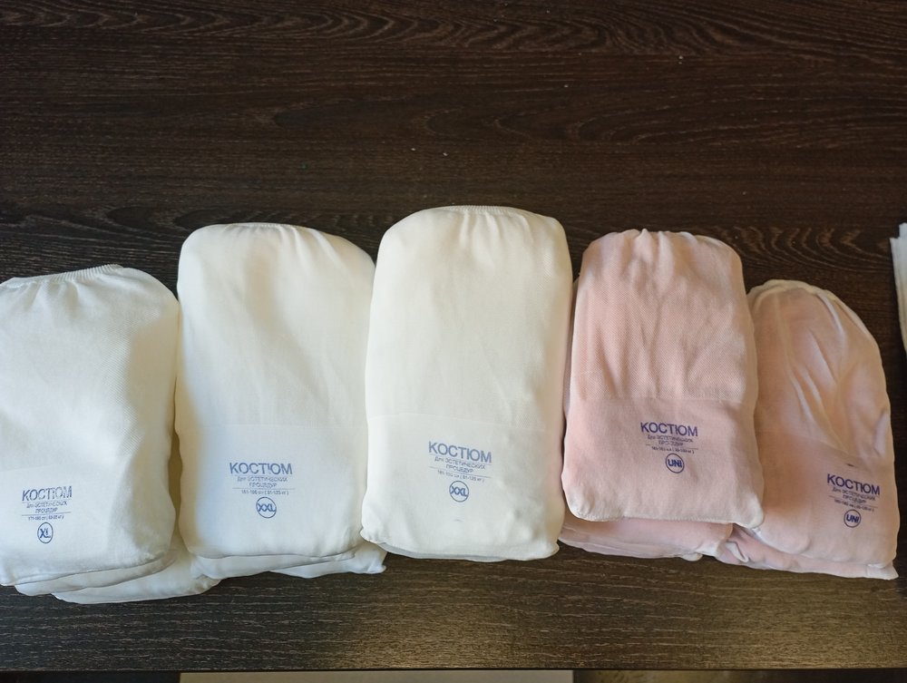 Аппарат полностью готов к работе, при покупке в подарок: салфетки на кушетку и новые одноразовые костюмы разных размеров для массажа (в количестве 17 шт.).
