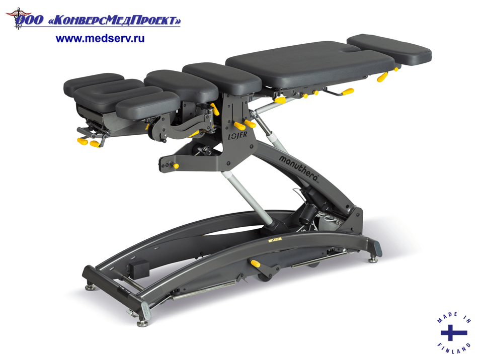 ООО «КонверсМедПроект» на правах официального дистрибьютора представляет высокотехнологичный стол для мануальной терапии Manuthera 242 (https://www.medserv.ru/catalog/massazhnye-stoly/183900.html ) производства Lojer, Финляндия.