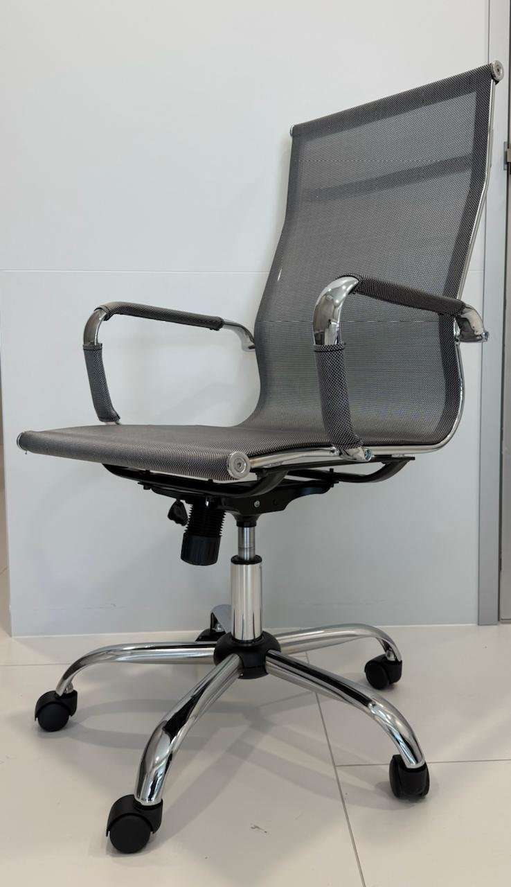 1️⃣ Стул (на колесах): Удобная регулировка высоты (газлифт). Сетчатая спинка с поддержкой поясницы (комфортно работать весь день). Надежная хромированная база. Стоимость: 7 000 руб. В наличии: 3 шт (уточнять по остатку)