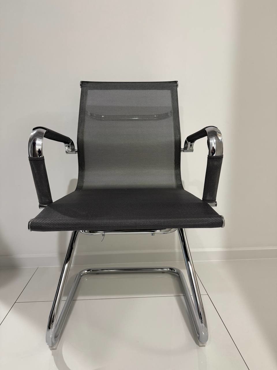 2️⃣ Стул (на полозьях): Устойчивый консольный каркас из качественного хромированного металла. Комфортная эргономичная посадка. Отлично подходит для зоны ожидания или переговорной. Стоимость: 5 000 руб. В наличии: 3 шт (уточнять по остатку)