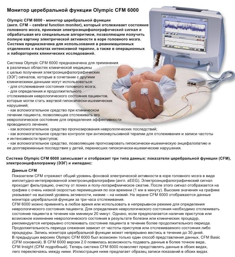 Система Olympic CFM 6000 находит применение в: Отделениях реанимации и интенсивной терапии Неврологических стационарах Перинатальных центрах Эпилептологических кабинетах
