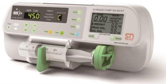 Аппарат предназначен для введения таких медицинских препаратов, как нитропруссид натрия, допамин, антибактериальные препараты и другие. В шприцевых насосах серии SN-50 применяются стерильные шприцы объемом 10 мл, 20 мл, 30 мл или 50 мл, калибрируемые аппаратом. Как только шприц подсоединяется к аппарату, аппарат автоматически определяет его характеристики.
