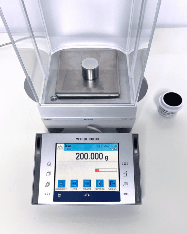 Номер лабораторных весов в госреестре 19145-07. НПВ - 1210 г, НмПВ - 0,1г. Дискретность - 1 мг.