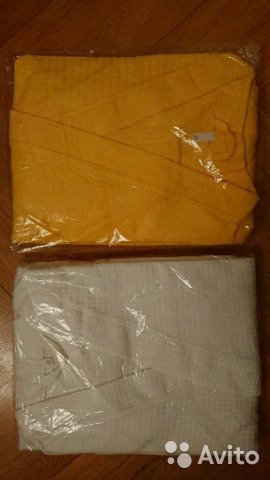 Халаты белые р. 56-9шт., р. 58-16шт. Жёлтые р. 52-13шт., р. 54-8шт. Всего 46шт. за 18тыр. (391р. за каждый).