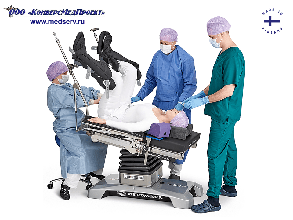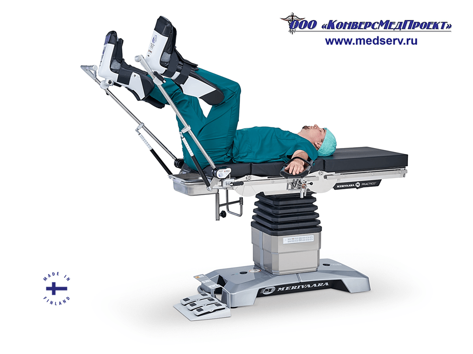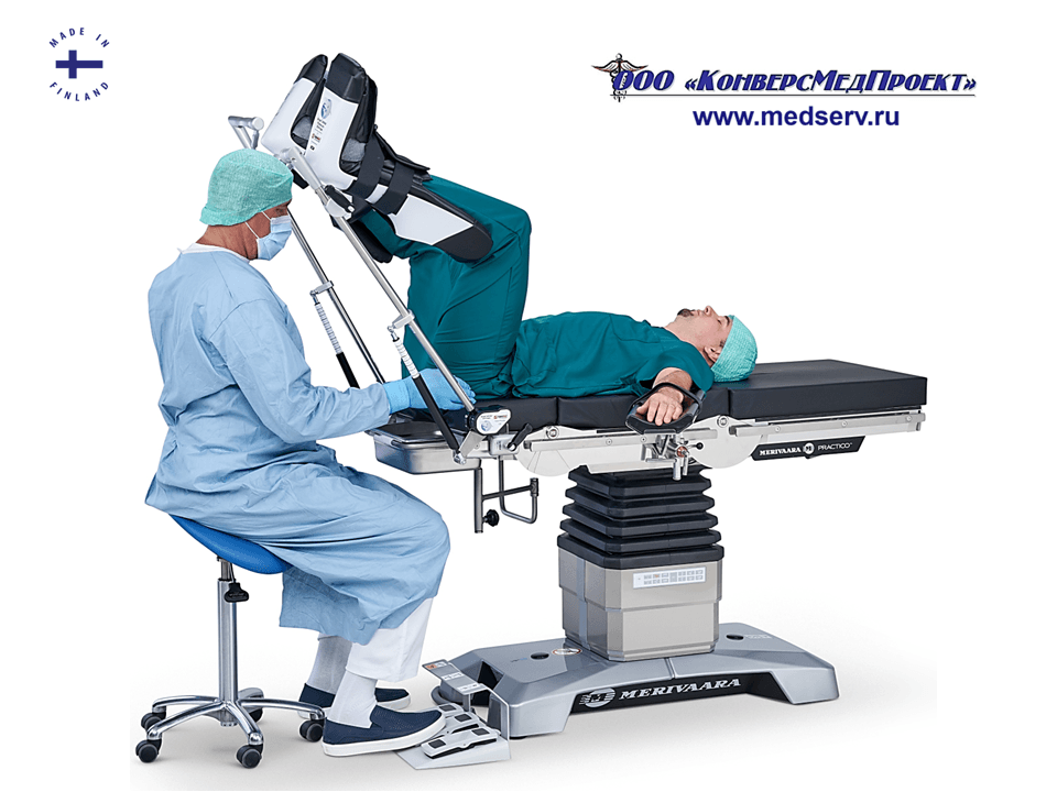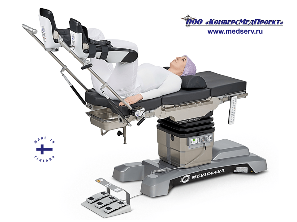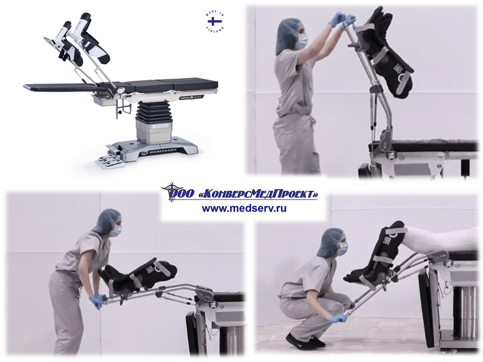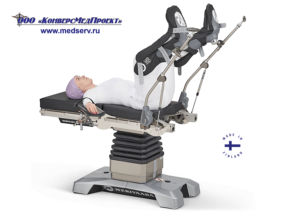ООО "КонверсМедПроект" на правах официального дилера представляет специальные опоры для ног с пневматическим приводом типа «стремя» / «сапожки» / «башмаки» (https://www.medserv.ru/catalog/Operatsionnye-Stoly/62301.html ) для удобства позиционирования пациента при проведении гинекологических, урологических и проктологических операций производства Merivaara Corp., Финляндия.