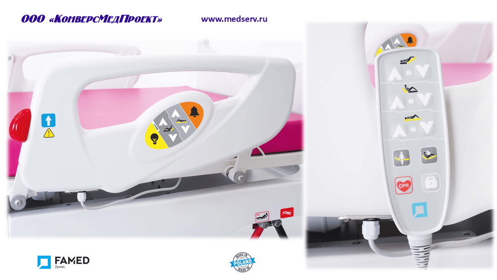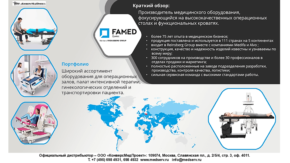 Фирма-производитель Famed Zywiec, Польша, за более, чем 75-летнюю историю разработки и реализации медицинской мебели в тесном сотрудничестве с практикующими врачами создала чрезвычайно функциональное изделие.