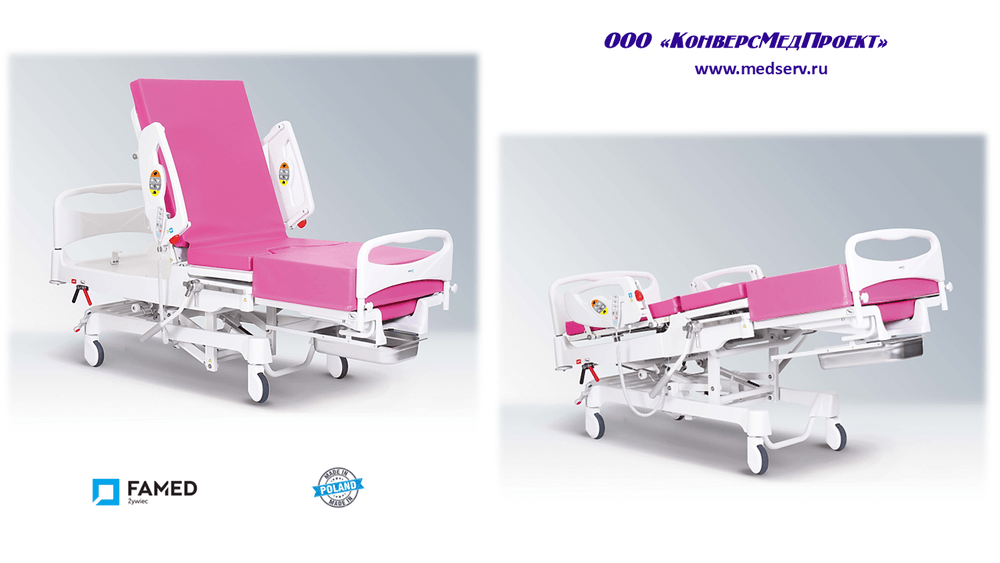 ООО «КонверсМедПроект» на правах официального дистрибьютора представляет продуманные функциональные кровати для родовспоможения LM-01.4 с электроприводом (https://www.medserv.ru/catalog/Akusherskie-Kreslakrovati/2355.html ).