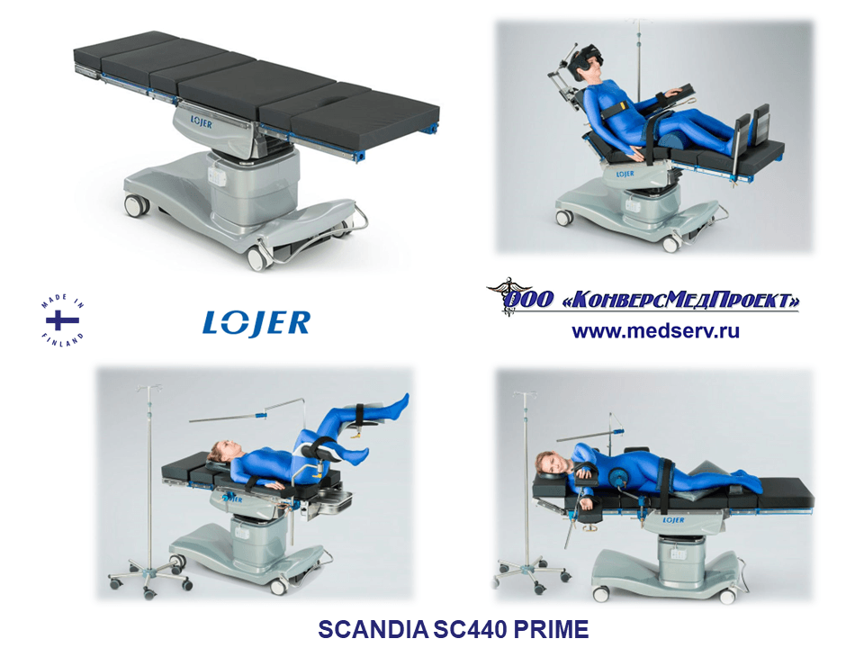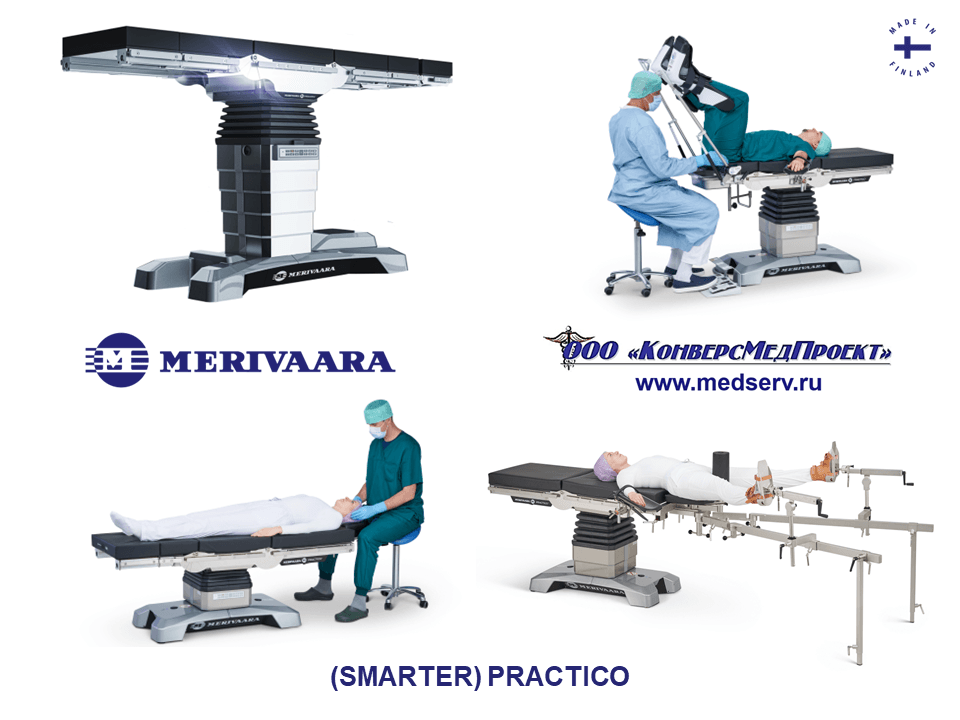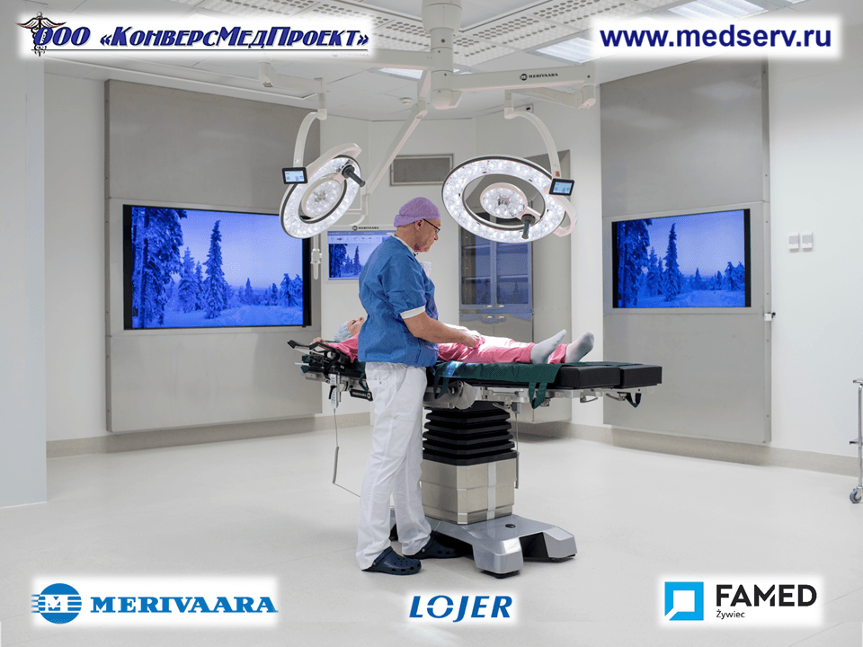 ООО «КонверсМедПроект» (www.medserv.ru) на правах официального дилера: Merivaara и Lojer, Финляндия, Famed Zywiec, Польша, представляет изделия производителей с вековым опытом в данной сфере. Применение новейших технологий и материалов приводит к созданию разноплановых функциональных хирургических столов, являющиеся важной составляющей оптимального рабочего места для операционной бригады.