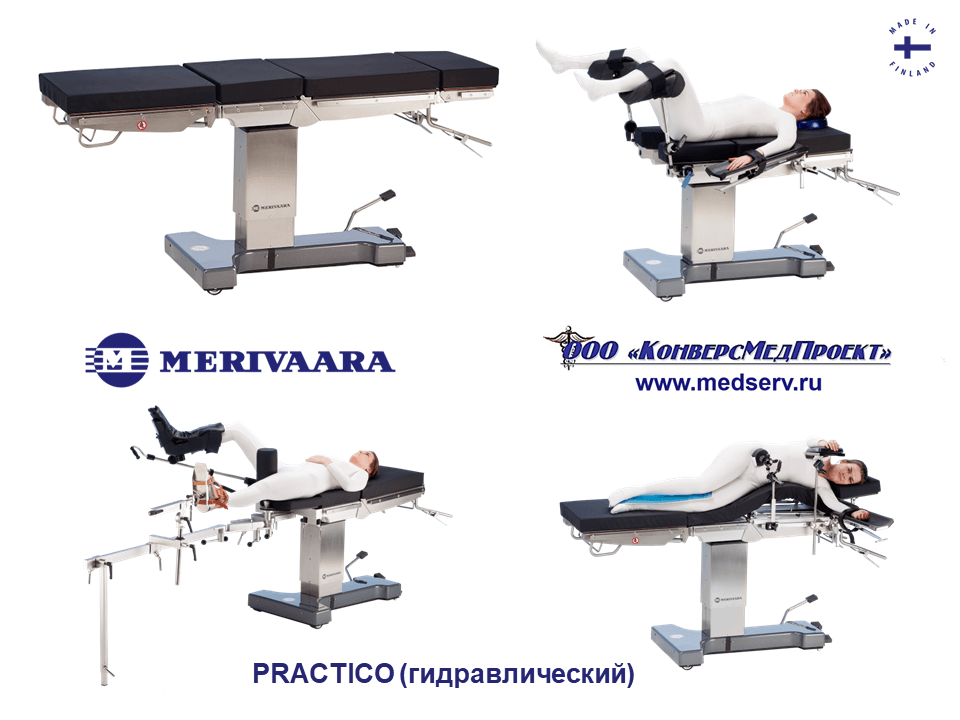 PRACTICO с гидравлическим приводом (https://www.medserv.ru/catalog/Operatsionnye-Stoly/1322.html ) – энергонезависимые функциональные для общей и специализированной хирургии.