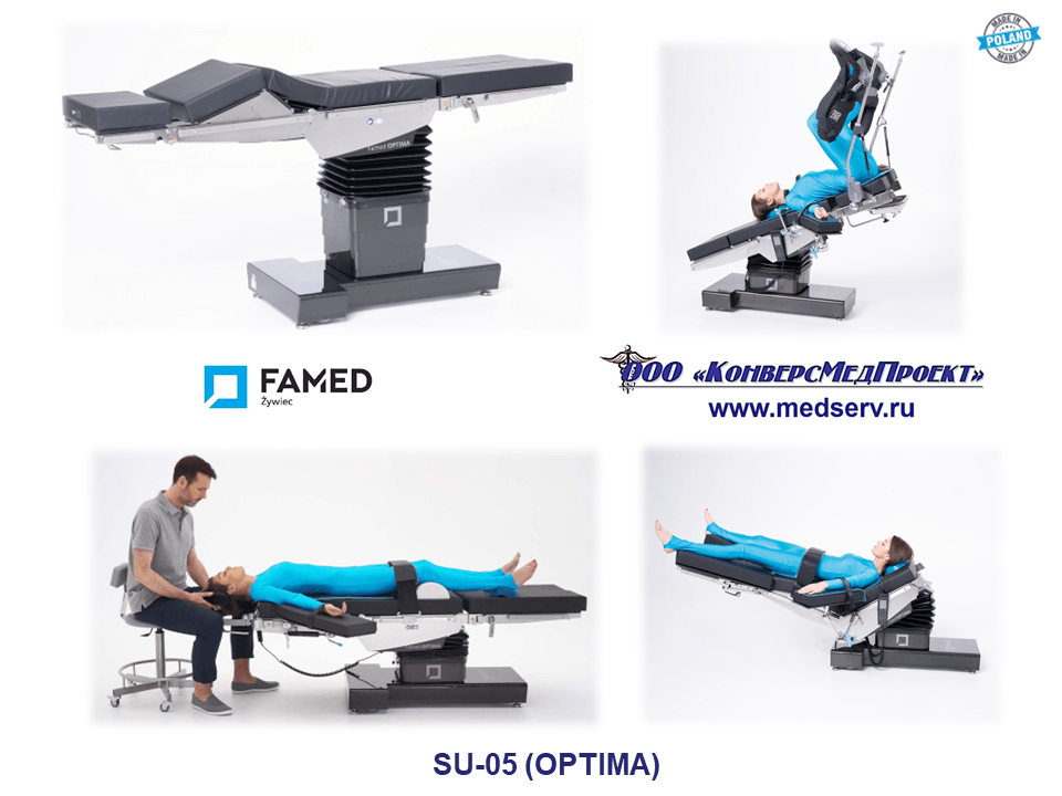 SU-03 (https://www.medserv.ru/catalog/Operatsionnye-Stoly/1858.html ) – семейство столов с электрогидравлическим приводом и широким спектром принадлежностей.