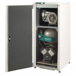Безмаслянный компрессор EKOM с отсасывающим агрегатом серии DUO 2V являются источниками чистого сжатого воздуха, несодержащего масляных капельных включений, который предназначен для приведения в действие зубоврачебных приборов и устройств, а также для создания пониженного давления в отсасывающем агрегате. Благодаря своим параметрам и размерам резервуара воздуха объемом 25 л и наличию отсасывающего агрегата, компрессор этого типа может обслуживать один или два стоматологических установок, которые оборудованы вытяжным блоком. Сжатый воздух, производимый безмасляным компрессором указанного типа, обеспечивает высокую степень соблюдения гигиены и качества труда стоматолога, не создавая, притом, вокруг себя среду, содержащую чужеродные вещества.