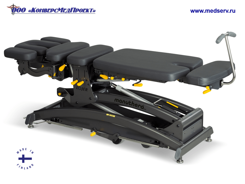ООО «КонверсМедПроект» на правах официального дистрибьютора представляет высокотехнологичный стол для мануальной терапии Manuthera 242 (https://www.medserv.ru/catalog/massazhnye-stoly/183900.html ) производства Lojer, Финляндия.