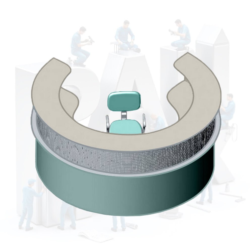 ЛДСП, рабочие поверхности оклеены HPL пластиком зашивка из сплошного металлического листа либо из листа с перфорацией (1/2 круга).