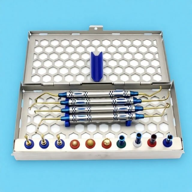 Набор для синус-лифтинга — это комплект специализированных хирургических инструментов, необходимых для проведения процедуры увеличения объёма костной ткани в области верхнечелюстного синуса (гайморовой пазухи) перед установкой дентальных имплантатов