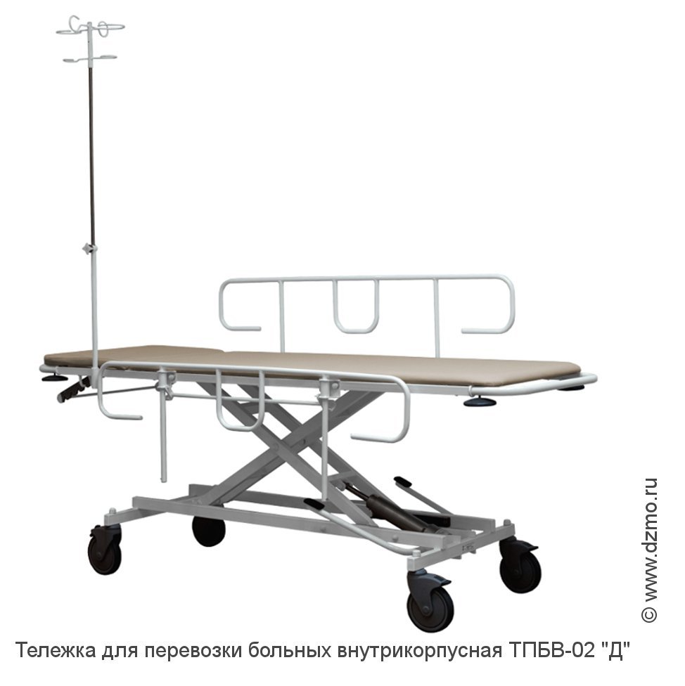 Тележка для перевозки больных внутрикорпусная ТПБВ-02 "Д" предназначена для перемещения больных внутри больничных помещений.